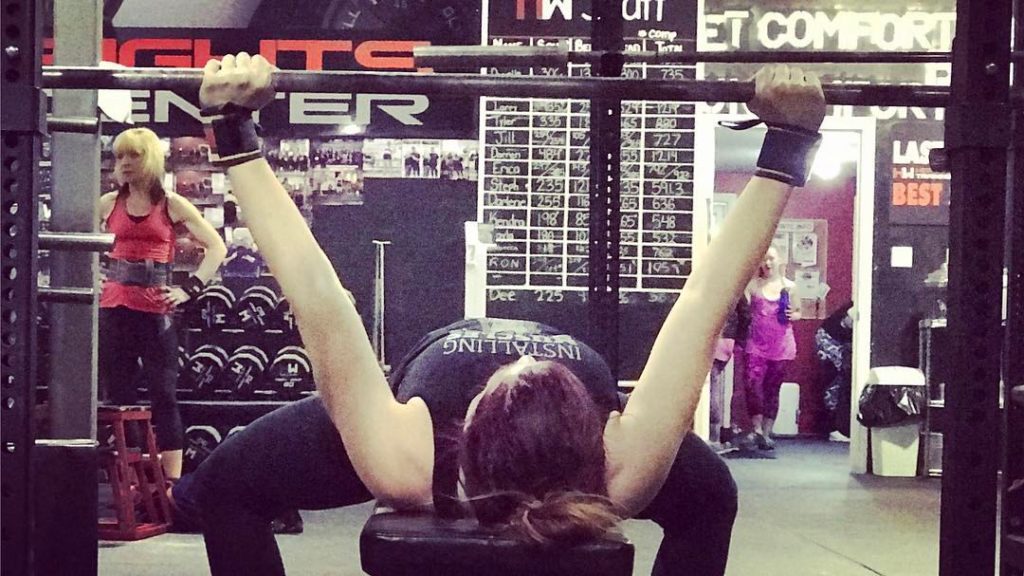 Heavy Bench Press Holds Rebecca with a 225 Bench Press Top Hold. A great way to get stronger and improve